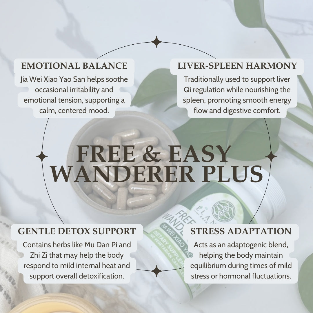 Holistically, Jia Wei Xiao Yao San is viewed as a companion for those navigating emotional overwhelm, hormonal fluctuations, or periods of internal agitation. It helps restore the gentle flow of energy that supports digestion, mood, and cyclical balance—inviting the mind and body back into a state where clarity, ease, and creative vitality can reemerge. Whether approached through the lens of TCM or modern herbal science, this formula remains a trusted ally for cultivating emotional buoyancy and whole-body harmony.*
