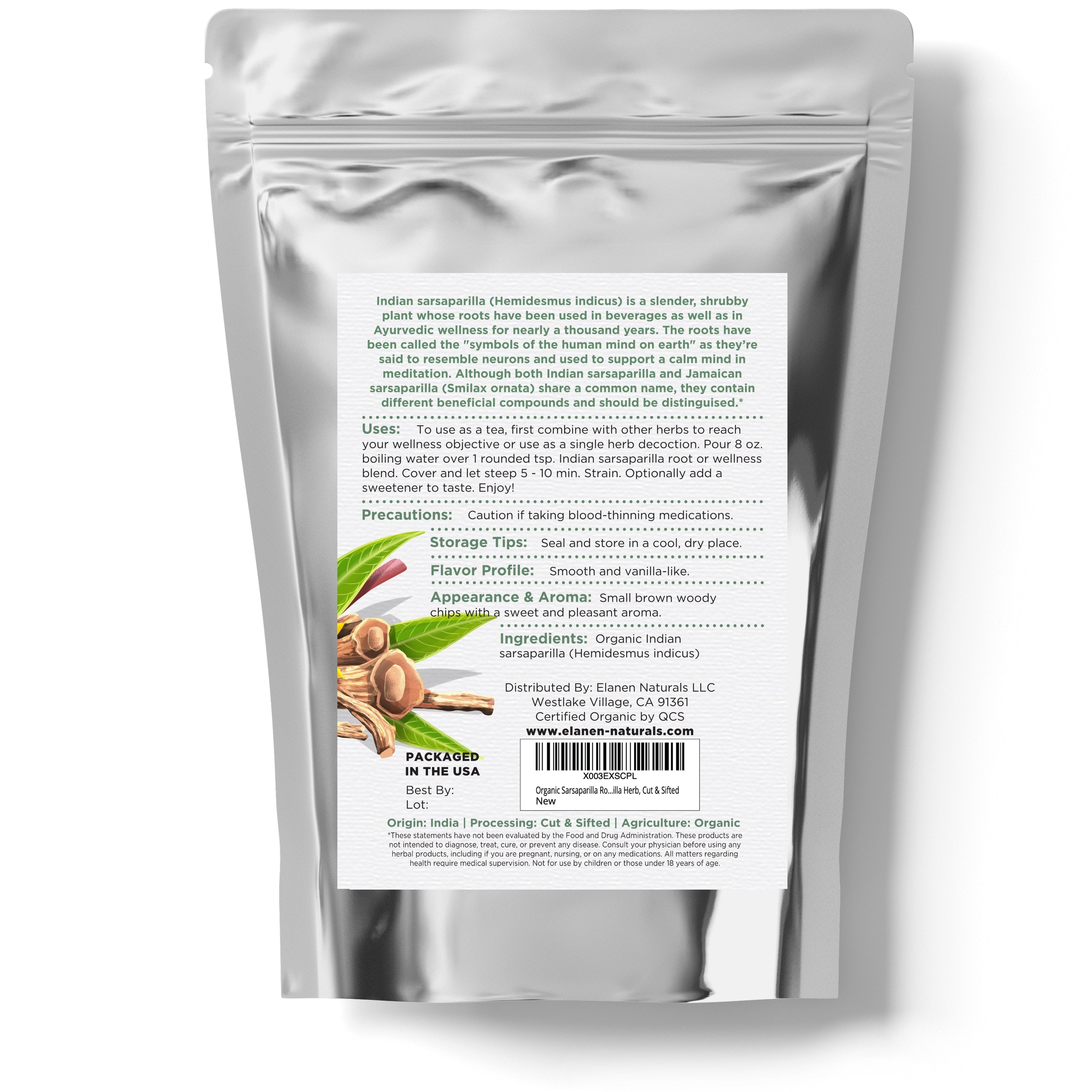 USDA Certified Organic Indian Sarsaparilla: Our non-irradiated, cut and sifted Indian sarsaparilla root (sometimes misspelled sasprilla, sarsaprilla, or sarspirilla) is organically grown and non-GMO. Responsibly sourced from certified organic growers, it’s packaged in BPA-free, resealable bags to preserve its natural aroma and vitality.