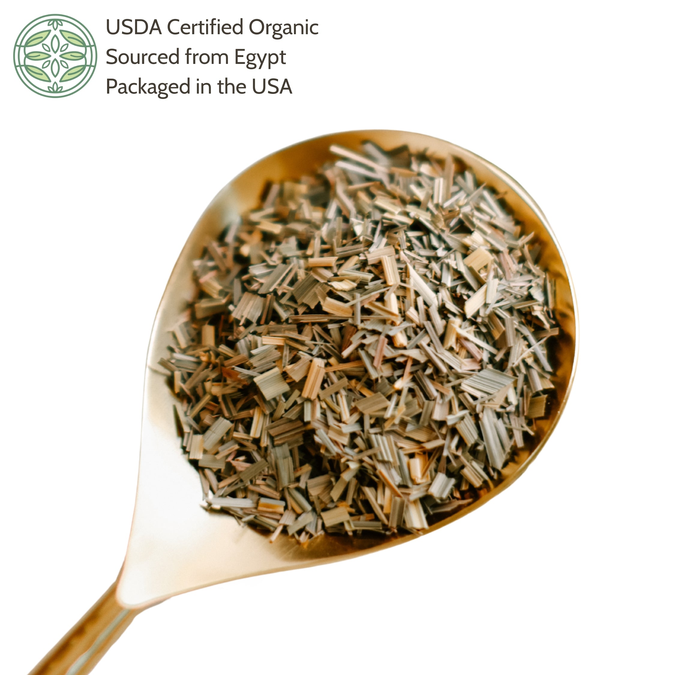 Sustainably Grown in Egypt: Freshly dried and bursting with a mildly sweet, lemony flavor, our lemongrass is organically cultivated in the fertile soils of Egypt—where this sacred grass has thrived for centuries. Crisp, clean, and full of vitality, it carries both the spirit of its ancient homeland and the assurance of modern science.