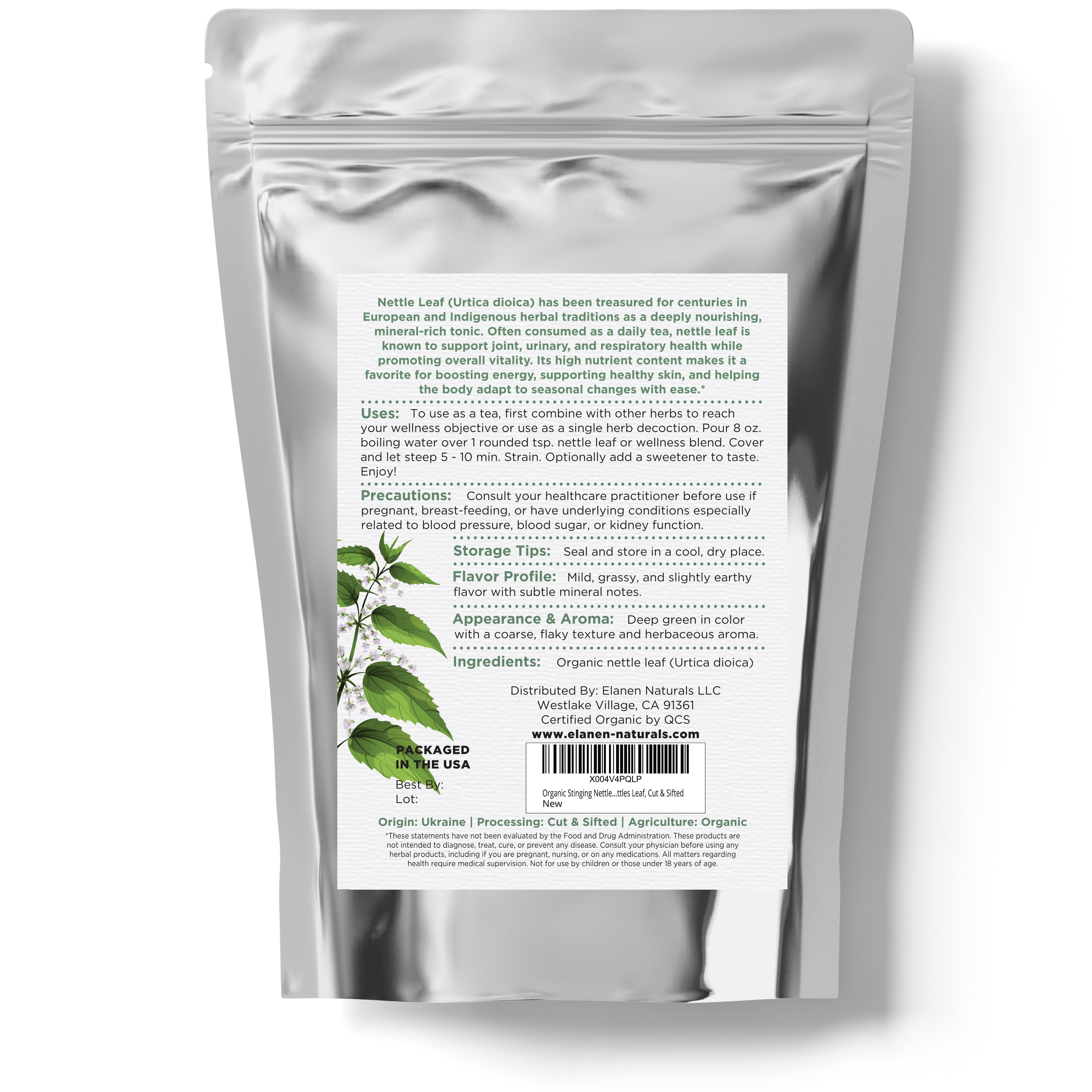 USDA Certified Organic Nettle Leaf: Our cut and sifted nettle leaf is non GMO, non irradiated, and sourced exclusively from certified organic growers. Each batch is packed in BPA free, resealable bags to maintain peak freshness, aroma, and potency.