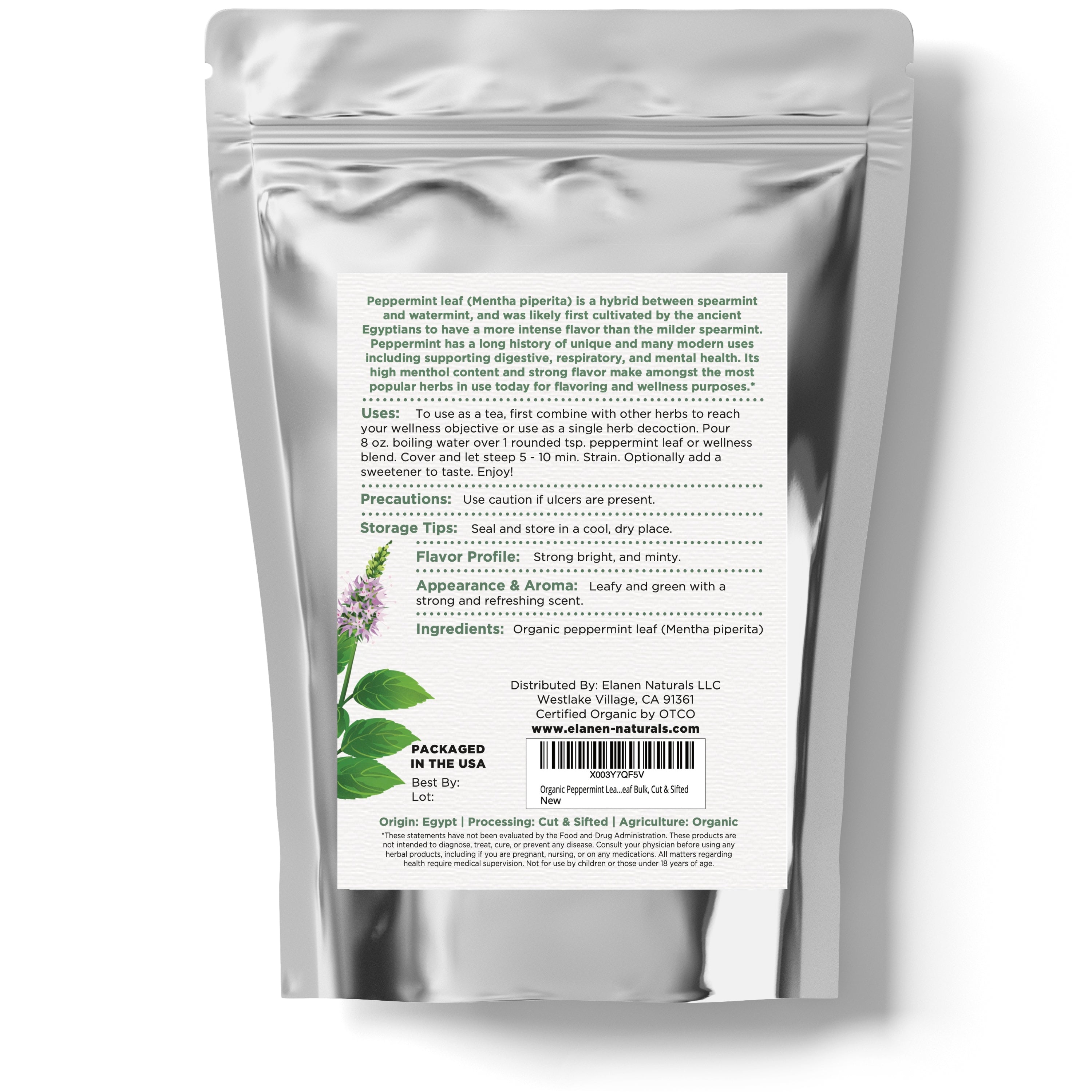 USDA Certified Organic Peppermint Leaf: Cool, bright, and full of vitality, our peppermint leaves are organically cultivated, non-irradiated, and carefully tested for purity. Packed in BPA-free, resealable bags, they’re delivered to you fresh, flavorful, and ready to support your daily rituals.