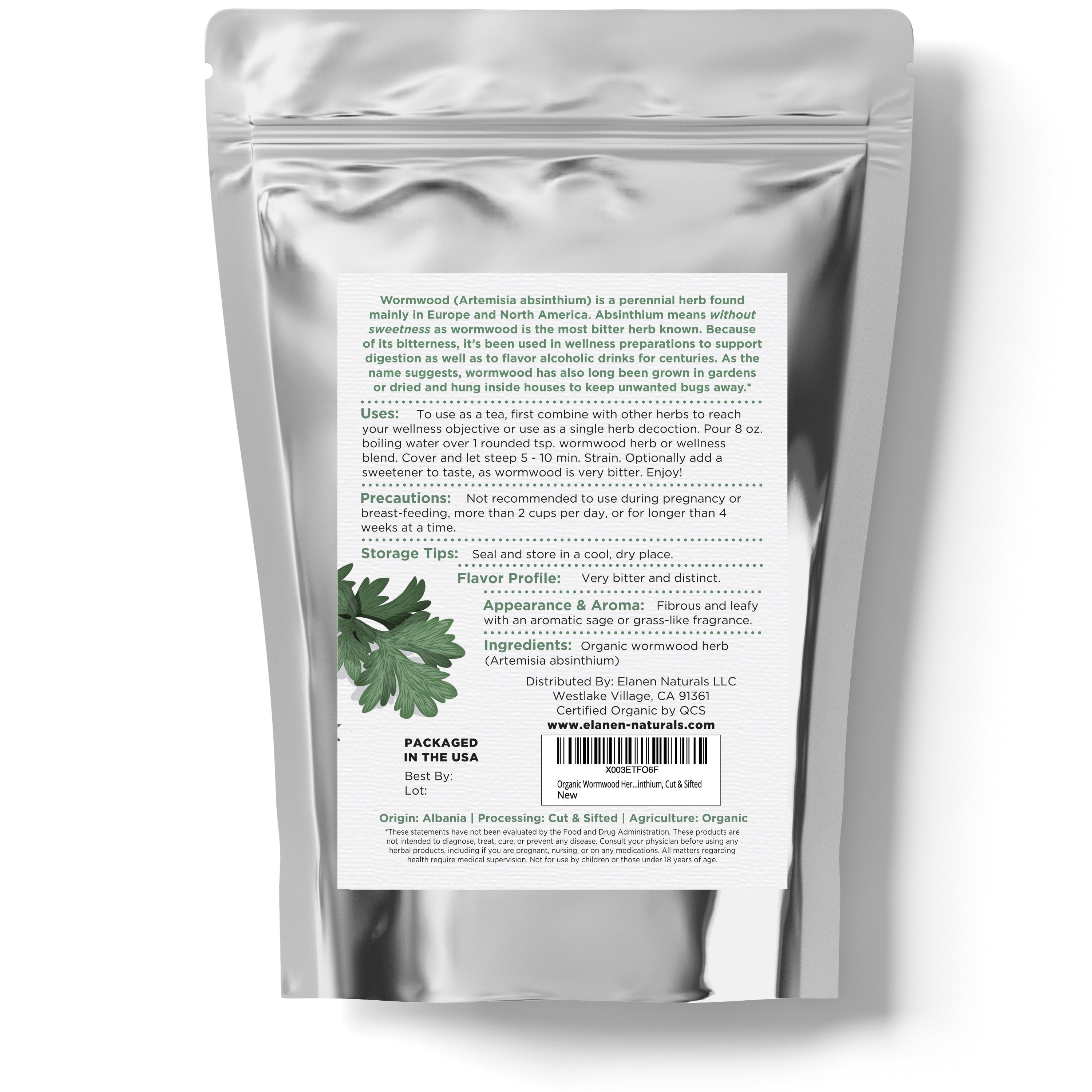 USDA Certified Organic Wormwood: Our non-irradiated, cut and sifted Artemisia absinthium is organically grown and non-GMO, carefully sourced from certified growers. Each resealable pouch is BPA-free, keeping this time-honored herb fresh and protected.